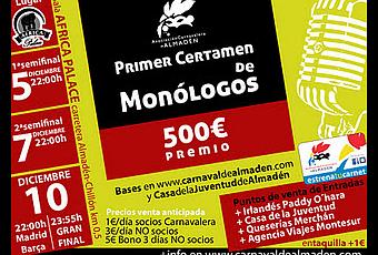 El Carnaval de Almadén se caracteriza por la ironía de sus letras, sus canciones satíricas y los planteamientos cómicos de situaciones cotidianas que las distintas agrupaciones interpretan en sus actuaciones. Esto está íntimamente ligado con los monólogos que realizan los cómicos en sus actuaciones, por esta razón la Asociación Carnavalera de Almadén organiza el I Certamen de Monólogos.