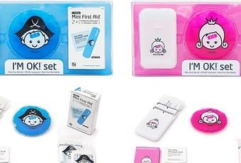 Está claro que no hay nada mejor que los mimos de mamá y papá para que los niños dejen de llorar cuando se hacen un rasguño, un chichón o una herida. Pero, ¿no habéis observado que también ayuda bastante a calmarlos que les digas que les vas a poner una tirita?, y si la tirita tiene dibujitos mucho mejor. Por eso me ha llamado la atención el I´M OK set.
