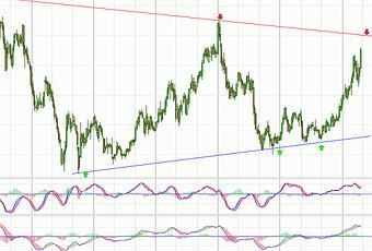 IBEX 35: pendientes de un acercamiento a los entornos de 8.170 puntos para volver a entrar (el que se quedó fuera), con stop loss en los entornos de 8.120 puntos.IAG: vemos en gráfico semanal como se va acercando a la banda superior de la figura triangular que encierra su cotización durante los últimos años. En este punto toca proteger beneficios y para ello nos fijaremos en su comportamiento en acercamientos a los 3,50 € poniendo un stop loss en los entornos de 3,20.