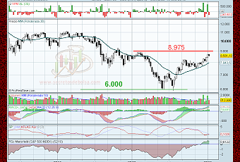 Además, el RSc Mansfield demuestra el buen comportamiento del índice español respecto al S&P 500. Por tanto en el corto plazo es bastante alcista, al menos hasta que veamos que hace con la resistencia anteriormente comentada.Por otro lado, si observamos el gráfico mensual podemos ver la directriz bajista marca la tendencia bajista del Ibex 35. Así que, de momento, mientras no se supere dicha directriz el índice seguirá, a medio/largo plazo, en tendencia bajista.
