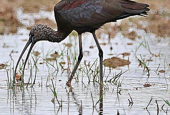 Morito Común (Plegadis falcinellus) un depredador y recolector generalista que se adapta a los recursos disponibles en sus hábitats preferidos de alimentación, en especial, los ambientes encharcados y humedales.