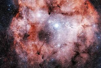 Se trata de una gigantesca nube de gas y polvo a una distancia de 2400 años luz de la Tierra. Está iluminada una masiva estrella azul, en el centro.La radiación y los vientos de esta estrella caliente se cree que comprimen partes del gas y polvo de la nebulosa generando nuevas estrellas, unas 100.000 año.