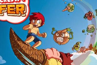 En Ice Cream Surfer tendremos que viajar a través del Universo Gourmet destruyendo a los enemigos que se nos pongan por delante, ¡caracterizados como malvadas verduras! En el juego podremos escoger entre cinco personajes diferentes, cada uno de ellos dotado de unas habilidades distintas.