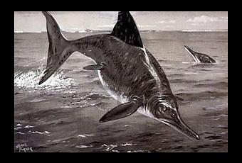 El grupo de los ictiosaurios fue creado por Charles Koening en 1818, y con el tiempo se han incluido especies como Shonisaurus y Ophthalmosaurus. Gracias a la abundancia de fósiles de este animalillo disponemos de impresiones de la piel, a través de las cuales hemos deducido que se parecería mucho a un delfín actual, solo que su cuerpo sería más redondo. Aunque el Ichthyosaurus no esté emparentado con ningún pez, guarda muchos parecidos con ellos, como sus aletas, dispuestas de una forma muy típica, su alargada mandíbula como la de un delfín (aunque un delfín es un mamífero, no un pez), y su cola terminada en una aleta con dos lóbulos0 con la que se propulsa.