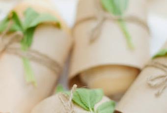 idea para poner el poner el pan en la mesa. Es simple pero muy coqueta. Un poco de papel craft marrón, una cuerdecita y unas hojas verdes, que pueden ser de menta por ejmeplo, son suficientes para que tu