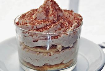 Una vez está frío y se ha despegado del papel, se cortan con un cortapastas unos círculos que entren en la copa o vaso donde se vaya a servir el tiramisú.
