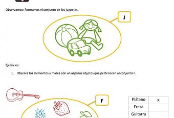 - Observa los elementos y marca con un aspa los elementos que pertenecen al conjunto F.