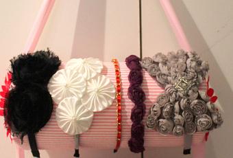 Buscando cómo ordenar las diademas de mi hija pequeña, he encontrado esta idea que me parece muy sencilla de hacer y queda muy bonita, y así nos aseguraremos de tener a la vista y ordenadas las diademas y turbantes.