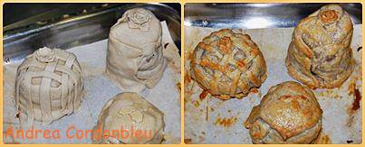 Se pinta con huevo batido y se introduce al horno a 180ºC durante 20 minutos.