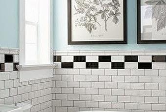Si lo que buscas es dar un toque sutil, siempre puedes recurrir a pequeños detalles, como en este caso una franja combinada en los azulejos, los marcos de los cuadros y el espejo, y los pequeños puntos del suelo.