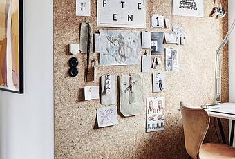 -Si el espacio no tiene elementos arquitectónicos interesantes puedes ser creativo y jugar con las paredes. Puedes utilizar varios tonos, papel pintado e incluso corcho o madera como en la foto superior.