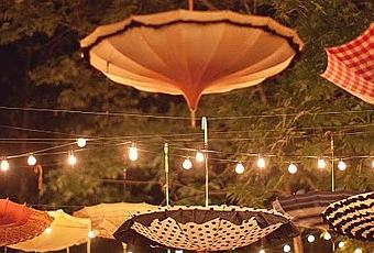 Original idea la de vestir el cielo de la pista de baile con paraguas de todos los diseños y colores. ¿Te animarías a crear un ambiente similar?