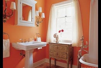 Convierte to naranja en un baño con tema tribal. Cuelga máscaras de madera tribal en las paredes. Acentúa las molduras en un tono verde claro o blanco. Apila toallas blancas y verde claro en cestos tejidos. Coloca una cortina de baño blanco y coloca un tapete tejido o de bambú en el piso del baño.Víahttp://www.ehowenespanol.com/