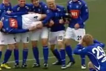 He descubierto a este equipo islandes que parece que han lanzado un reto, a ver qué equipo es capaz de celebrar los goles de formas más originales a las suyas. Se trata del Stjarnan FC y cada vez que marca su jugador Halldór Orri Björnsson celebran el gol de la manera más extraña. Algunas son auténticas coreografías que llevan su tiempo organizar (otras son de las que provocan vergüenza ajena). Lo que si es cierto es que consiguen aumentar el espectáculo y hacernos reír un rato: