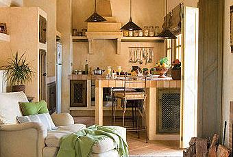 En cuanto a los materiales, destacan los suelos de barro e incluso baldosa hidráulica, las paredes irán pintadas o encaladas y en el caso de baños y cocina combinan pintura con azulejos de tipo rústico con acabado mate. Para los muebles y complementos los materiales naturales se llevan todo el protagonismo, madera, algodón, lino, mimbre, sisal,...En definitiva, podríamos decir que tiene algo de estilo rústico, de contemporáneo y vintage (suele tener presencia algún mueble antiguo recuperado, muchas veces de herencia), un estilo que busca siempre la sensación de frescor y potenciar la luz natural y que luce especialmente bien en casas (no es un estilo muy apropiado para pisos) con patios, jardines o porches, los exteriores son también muy importantes, por eso del buen tiempo que solemos tener por aquí y de aprovechar el fresco de las noches de verano.