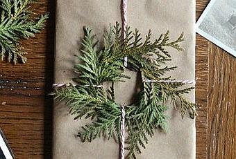 Añade una ramita de pino, eucalipto o de la planta que puedas encontrar para darle un toque natural y navideño al regalo.