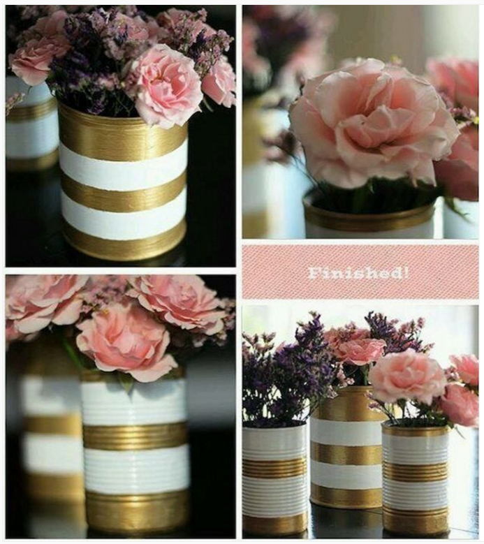indas latas recicladas, ¿Cuántas latas podemos reciclar en una semana? Colecciona y con un poco de pintura en spray, etiquetas y lazos transforma cualquier lata a un lindo florero, maceta o dulcero, Es un gran proyecto para renovar y estas ideas son muy útiles para organizar, decorar y hasta pueden ser un lindo detalle para regalar. Para lograr la inspiración de nuevas ideas aquí están las imágenes