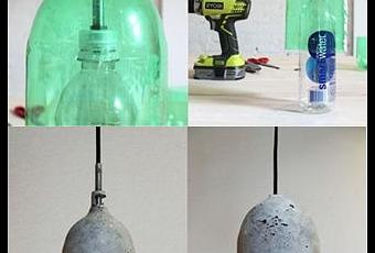 Tan sencillo como echar cemento en un recipiente teniendo en cuenta dejar un canal para pasar el cable de la lampara. Se pueden usar boles, botellas de plástico, bricks de leche... El acabado es muy moderno y profesional, ¿no os parece?
