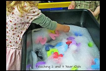 Letras de foam en agua con jabón