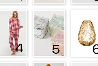 1.-Pendientes Snake, de Stradivarius 2.-Planer de Piel para éste año, de Stradivarius3.-Espejo Joyero, de Stradivarius4.-Pijama dos piezas de cuadros, de H&M5.-Vela aromática en frasco, De H&M6.-Jarrón mini de cristal de H&M7.-Auriculares Mickey con neceser, de Berhska9.-Carcasa móvil, de Bershka8.-Gorro pompón, de Bershka9.-Carcasa móvil, de Bershka