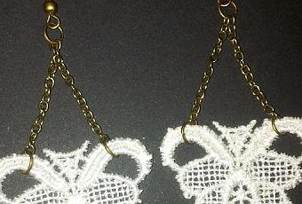 En primer lugar unos pendientes de guipur que a mí personalmente me encantan porque son muy ligeros. Tienen forma de mariposa y podemos ajustar el largo a vuestro gusto ;)