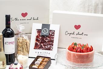 • Caja gourmet San Valentín: Compuesta por vino tinto 47PSQR Ribera del Duero (crianza 12 meses en barrica), paleta 100% ibérico de bellota Julián Martín, las regañás de semillas más exquisitas de Madrid elaboradas en el propio obrador de Vanille Bakery Lab, cajita de 6 trufas 100% artesanas, mini galletas de queso parmesano regiano y una vela aromática con vuestras iniciales.