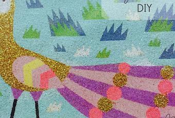 La mediana y la pequeña eligieron un set de láminas para pintar con arena y purpurina. A la peque (4 años) hubo que ayudarla un poco, pero la mediana (8) lo hizo sola perfectamente. He de confesar que yo me temía que la cocina iba terminar hasta arriba de arena de colores y purpurina, pero no fue así. Fueron super cuidadosas con todo el material.