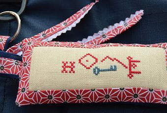 Un identificador personalizado, que puede servir también como llavero, un bordado a dos caras montado en forma rectangular con un charm que le dá vida a una bolsa.