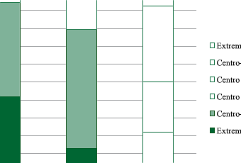 Además, el que la mayoría de individuos situados en esos grupos 1.2.3.4, sean como se indica anteriormente, no quiere decir que no existan minorías con tendencias cercanas a centro y derecha, -como sucederá a la inversa- siempre hay porcentajes de componentes definitorios muy variados en personas situadas en todos los grupos, así no es excepcional encontrar franquistas en la izquierda y votantes de extrema izquierda, que están en contra de la igualdad, son adictos a las procesiones y están contra los impuestos, o contra el estado de bienestar. Y por supuesto luego están los cambios que se pueden producir en el transcurso del tiempo.