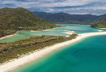 La playa Awaroa se encuentra dentro del Parque Nacional Abel Tasman, en el extremo norte de la Isla Sur del país. (Tasman, un explorador holandés, fue el primer explorador occidental en llegar a Nueva Zelanda y Tasmania, su homónimo.)