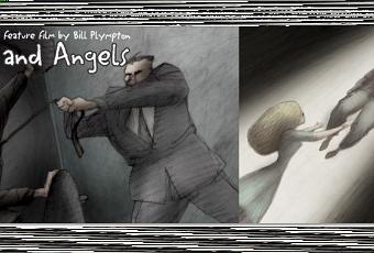 Bill Plympton, animador independiente norteamericano, en la línea más alejada de Disney o Pixar que puedan imaginar, es más conocido por sus cortos que por sus largometrajes, aunque Idiots and Angels no es el primero de su prolífica carrera. Largo de animación exclusivamente para público adulto, la historia es la de un hombre egoísta, reprobable en cada una de sus actitudes, siempre abusivas, que se ve obligado a actuar de un modo más positivo cuando una buena mañana descubre unas incipientes alas en su espalda. En la web oficial le llaman Ángel, aunque la película es sin diálogos y en ningún momento se cita su nombre. La eterna disyunción entre el bien y el mal, encarnada esta vez por un personaje que en principio causará poca empatía en el espectador, un ser desagradable, malhumorado, que fuma constantemente y pasa la mayor parte de su tiempo sentado en la barra de un bar oscuro donde trata de forma violenta a cualquiera que se cruce en su camino. El personaje terrible, egoísta y repugnante, que cambia su papel de agresor a agredido cuando las alas crecen y cobran vida propia mientras es objeto de las burlas de los demás por su apariencia.