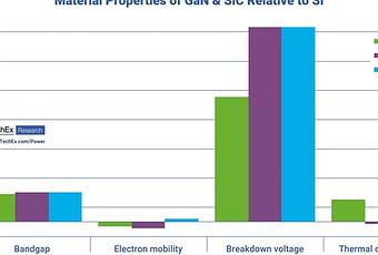 Propiedades materiales de GaN y SiC en relación con Si. Fuente: IDTechEx