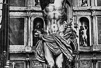 Exacto, se observa como dicho retablo antaño contaba con tres cuerpos de altura y dos capillas centrales. Veamos esta otra imagen donde lo visualizaremos en todo su esplendor...