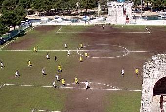 Posiblemente estamos ante el único estadio delimitado por dos monumentos históricos y protegidos por la UNESCO, el Castillo del Camarlengo y la Torre de San Marcos. En este curioso campo juega sus partidos como local el modesto HNK Trogir.