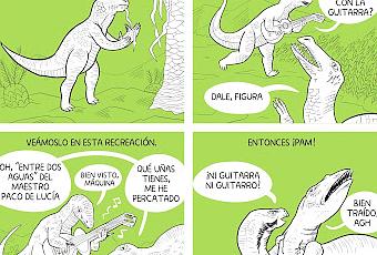 Las viñetas dinosaurianas de Álvaro Terán son bien conocidas en Koprolitos (las hemos visto aquí, aquí o aquí) y pasaron a formar parte del cómic en papel "Le puede pasar a usted" editado por Fandogamia. En esta ocasión, el protagonista es Iguanodon, que este 2025 cumple doscientos años y que aquí muestra sus trucos a la hora de atacar a sus víctimas... Puedes ver más sobre su trabajo en su cuenta de Instagram o en su cuenta de Patreon.