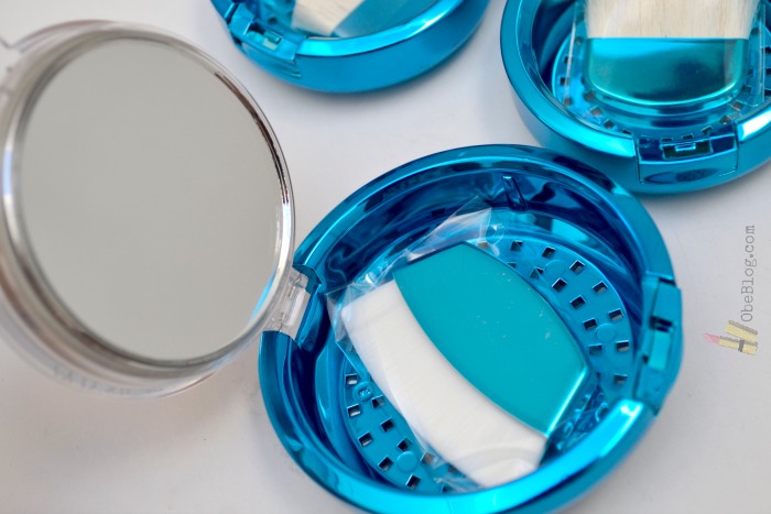 La polvera de cada uno de los tres productos viene provisto de un doble fondo donde hay un espejo y una mini brochita.