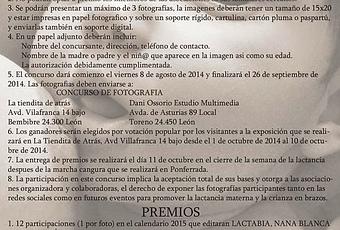 LACTABIA, con la colaboración de Lactabebé y Nana Blanca convoca su segundo concurso de fotografía "Imágenes del cariño" con motivo de la celebración de la Semana de la Lactancia del 6 al 11 de octubre de 2014 en la comarca del Bierzo.