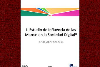 (Descarga de Slideshare)El II Estudio de Influencia de las Marcas en la Sociedad Digital, dirigido por NCA y IE Business School, abarca las 100 marcas que más invierten en publicidad tradicional en el mercado español agrupadas en doce sectores de actividad: alimentación, banca y seguros, bebidas, belleza e higiene, distribución, electrodomésticos, energía, moda, motor, telecomunicaciones y turismo y viajes.