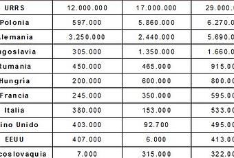 En la tabla faltan, entre otros, países como Japón que pudo tener 2,6 millones de víctimas totales o China con 1.450.000 víctimas miliatares.Otras estimación: