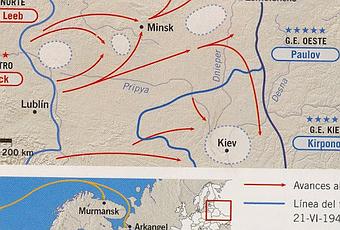 “El objetivo más importante antes de la llegada del invierno, no es la ocupación de Moscú, sino la toma de Crimea, de la región minera e industrial de la cuenca del Donets y el corte de las líneas de abastecimiento de petróleo del área del Cáucaso a los rusos, y en el norte, rodear Leningrado y enlazar con los finlandeses” (Directiva de Hitler a Bock el 21 de agosto).