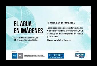 En este marco, la Facultad de Ingeniería y Ciencias Hídricas (FICH) de la Universidad Nacional del Litoral (UNL) y el diario El Litoral, con el auspicio de Aguas Santafesinas SA, convoca al III Concurso de fotografía “El agua en imágenes”, con el objetivo de que los participantes puedan representar en fotografías de qué modo los seres humanos nos vinculamos con el agua, promoviendo la reflexión sobre la responsabilidad que nos cabe en relación con el uso sustentable de este recurso.