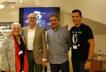 Los protagonistas de la mesa redonda sobre novela histórica: Toti Martínez de Lezea, Antonio Garrido, José Luis Corral y Adrián Martín Ceregido.