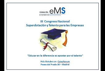 Los próximos dias 8 y 9 de octubre tendrá lugar en Madrid el III Congreso de Superdotación y Talento para las empresas organizado por la Fundación El Mundo del Superdotado de forma conjunta con la Confederación de Asociaciones de Altas Capacidades (CONFINES). Además de la actividad formativa, el Congreso ha organizado una cena solidaria y una entrega de premios Excelencia Educativa para Superdotados y Altas Capacidades. El periodo de inscripciones está abierto en sus diversas modalidades: público en general y especial para profesores.