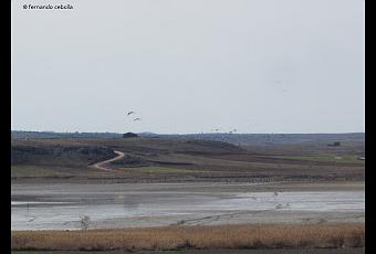 Hola a todos. Hoy presentamos la segunda parte de nuestro reportaje sobre las grullas de la laguna de Gallocanta, en este mes de 2013. Como en pasados festivalesgrulleros, presentamos las fotografías que muestran el día tan sensacional que tuvo lugar el día 15. Pasada la 13:30 de la tarde, el baile de grullas es constante. Llegan del sur y vuelan en torno a la laguna para ver dónde descansaran para comer y beber un poco. Cada bandada busca su sitio. Van y vienen; vienen y van. Es un bello espectáculo.
