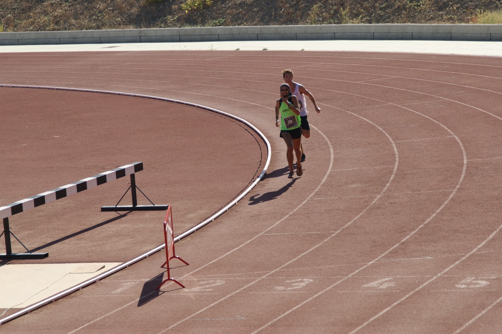 No caí en el error de tratar de alcanzarlo aún, ya que sabía que aun nos quedaba la vuelta de rigor al estadio de atletismo, y ahí sería donde yo atacaría; si lo alcanzaba, es que él había cambiado de ritmo antes de tiempo, y si no, no lo iba a haber podido alcanzar de todos modos.