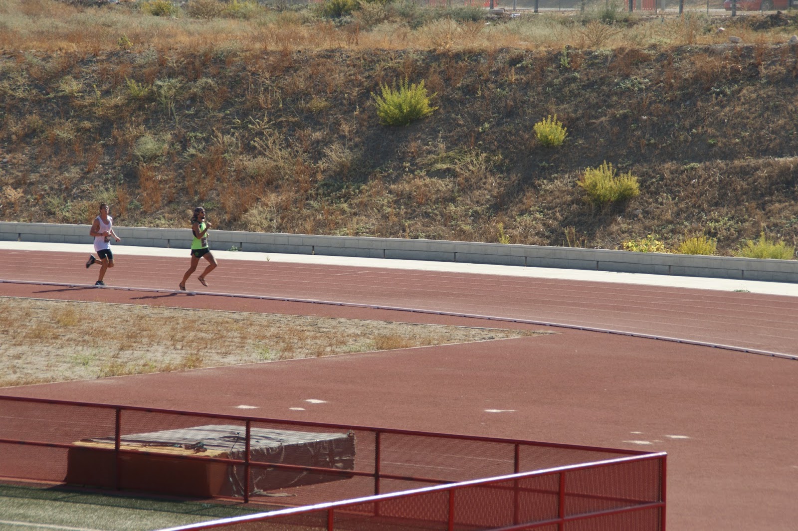 Tras dejar atrás el colegio y su ecohuerto cogimos al fin un poco de pendiente a favor, y tras echarme un buche de agua al gaznate, aumenté la amplitud de la zancada y comencé a coger posiciones.