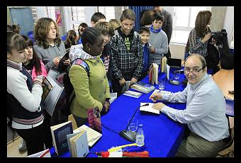 Autor muy prolífico e inquieto, reconoce que le gustan todos los géneros literarios, y ante la pregunta de una alumna acerca de cómo querría que le recordasen en la Historia de la Literatura, respondió que a lo único que aspira, cuando se marche, es a ser evocado como un tipo divertido. Y a fe que lo demostró en cada una de sus intervenciones, respondiendo a las preguntas de los jóvenes con la misma sinceridad con la que reconoció que sus primeros versos nacieron para conquistar a una compañera de instituto, y que pasó de copiar a Bécquer para lograr aquel éxito amoroso, a escribir más de veinte obras, porque gracias a ese amor primerizo descubrió que fue la poesía la que verdaderamente le conquistó a él.