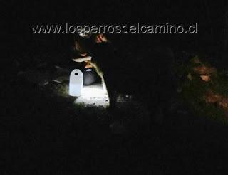 Al venir de vuelta paso al lugar a dejarles el resto de agua que nos quedaba, de noche sentía sus ladridos temerosos resonar en medio de la oscuridad escondidos entre los cerros, pero el chowchow ese día salió a encontrarme, bajó del cerro, me senté en la tierra para darle confianza, y se acercó. Fue la primera vez que nuestras miradas se encontraron, el primer contacto. ¡Que emoción mas grande se siente cuando te logras comunicar con un perro abandonado que ha sufrido tanto!. Esa fue la primera vez que un perro de esa raza se me acercaba tan cerca. Como no recordar a los otros tres de la misma raza que abandonaron hace cuatro años, todos murieron, sin haber logrado nunca acariciarlos. Siempre fieles a sus amos. Esa noche me sentí previlegiada, era la primera vez que estaba tan cerca para tocarlo, me miró a los ojos de manera directa, y escapó.