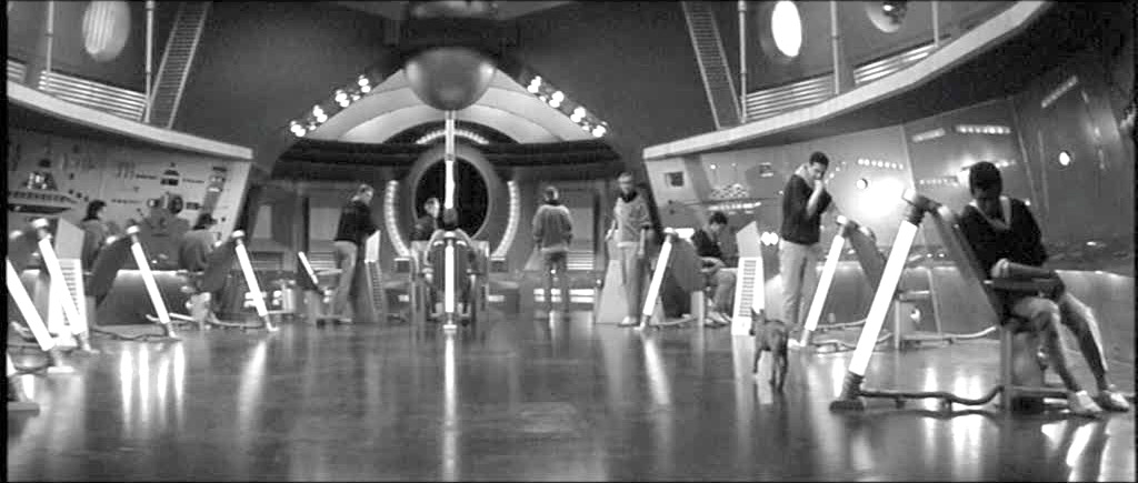 Me refiero a que la dirección artística es admirable y la puesta en escena impecable. Los interiores de la nave espacial son ricos en detalles y se magnifican gracias a su soberbia fotografía en blanco y negro a toda pantalla, a cargo de Jan Kalis, un auténtico mago, y de Sasa Rasilov.