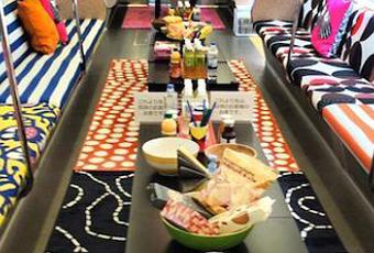 El interior de los vagones es un escenario de cuento y fantasía que destaca completamente por tener todos los accesorios decorativos como: cortinas, mesas, alfombras, cuadros y lámparas que hacen muchísimo más divertido y llevadero el viaje de los usuarios. Durante este primer día de campaña, la firma de muebles y accesorios invitó a todo aquel que se subiera al metro a un desayuno, donde se interactuaba directamente con el menaje de la colección.
